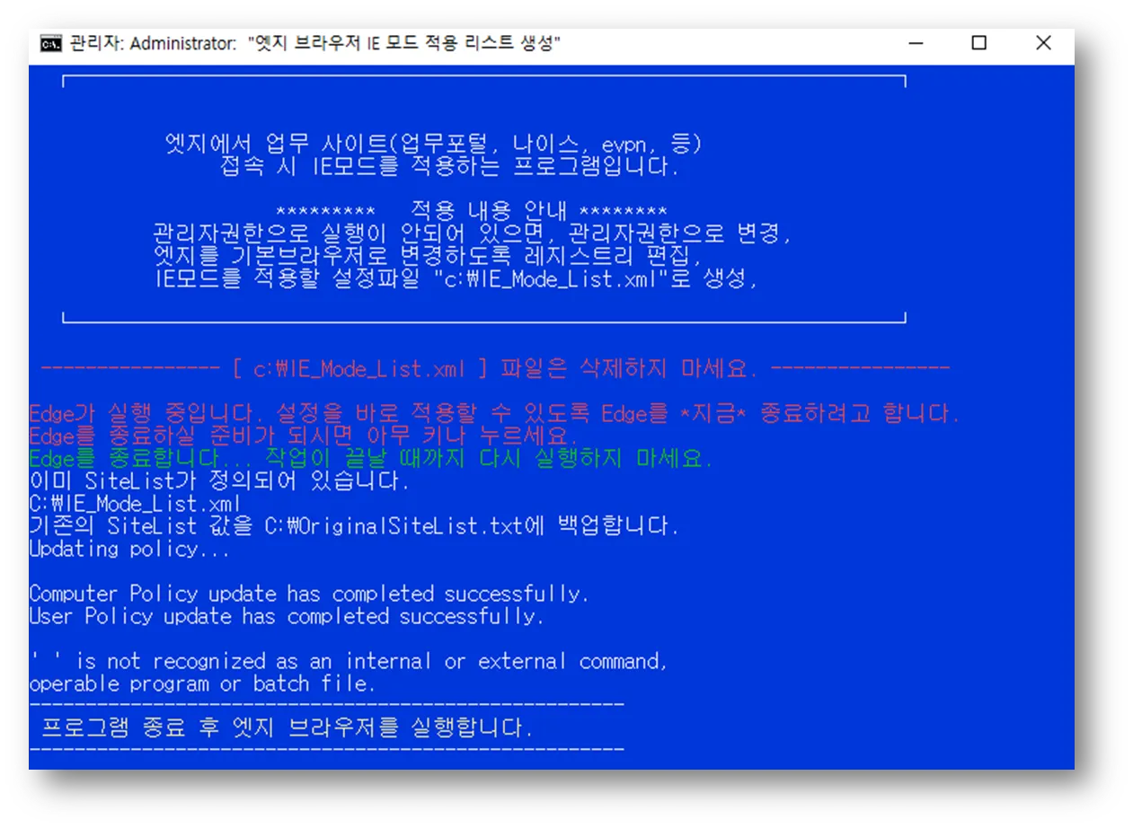 다음과 같은 창이 떠서 작업이 완료되면 엣지가 자동 실행 됩니다.
