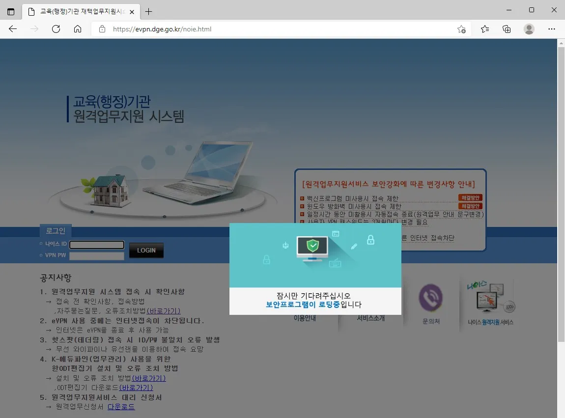윈도우10, 윈도우11, Edge(엣지) 환경에서 업무포털(나이스/K-에듀파인/EVPN) 사용이 가능합니다.