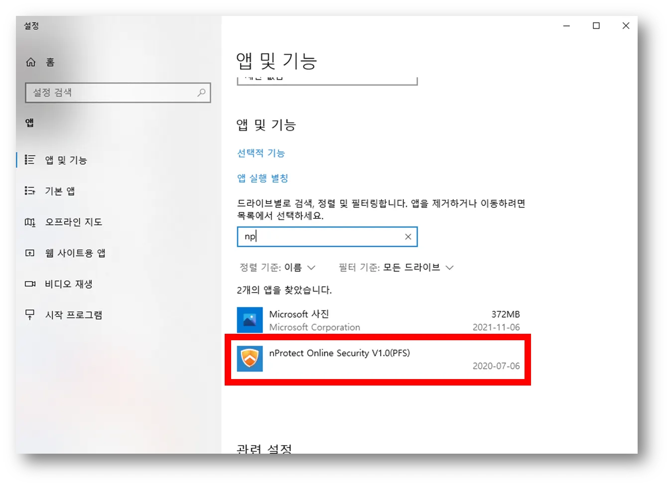 위 방법으로도 첨부파일이 열리지 않는 경우, 아래 프로그램을 삭제한 후 다시 시도해보시기 바랍니다.