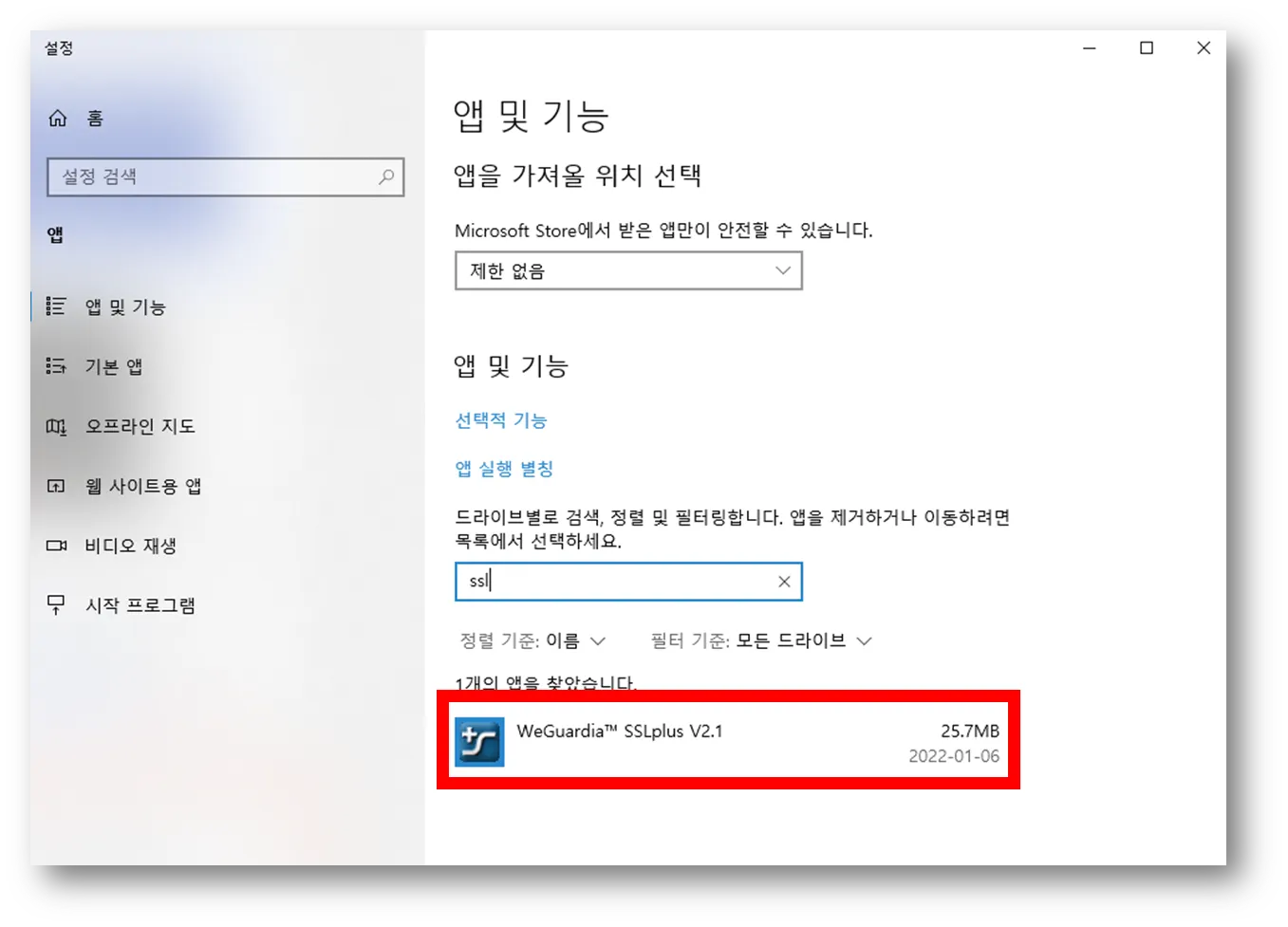 SSLplus 삭제 (EVPN 접속 프로그램 설치 반복 관련, 접속 지연 관련)